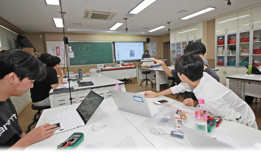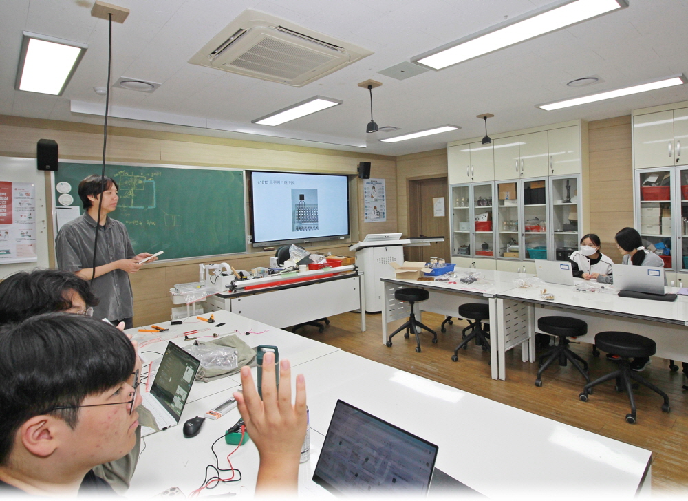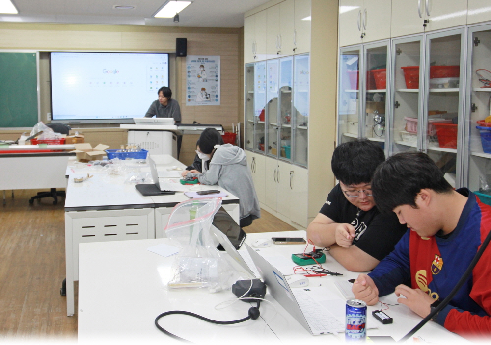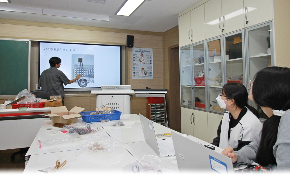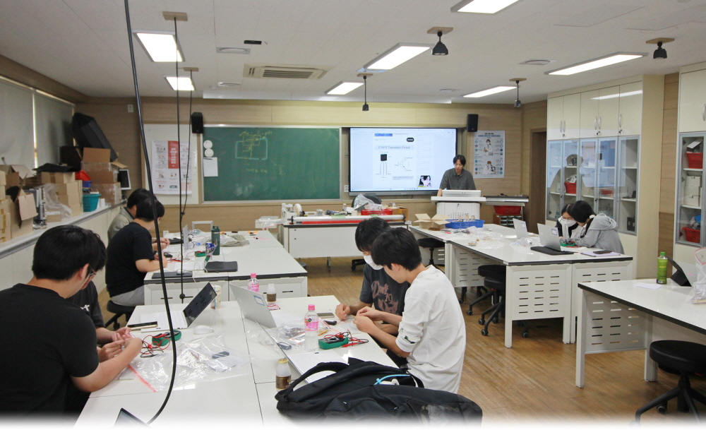 교육봉사 나눔의 실천의 일환으로 본교 졸업생 정의선 학생의 전기전자공학 오픈랩 프로그램이 과학수리부 주관으로 진행되었습니다.