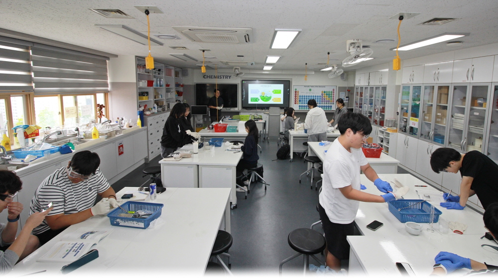 송도고등학교는 인하대 이차전지사업단과 인천시교육청 업무협약을 바탕으로 지역 고등학생에게 이차전지 첨단분야와 수소 분야의 기초 탐구 분야를 중심으로 한 이론 교육, 실습 교육을 제공하기 위해 공동교육과정을 마련했다.